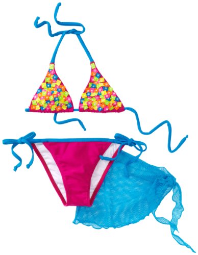 thong swimsuits bikinis girls Sweet Lola Girls 2-6X Sprinkles 3 Piece Bikini Set, Hot Pink/Blue, 4